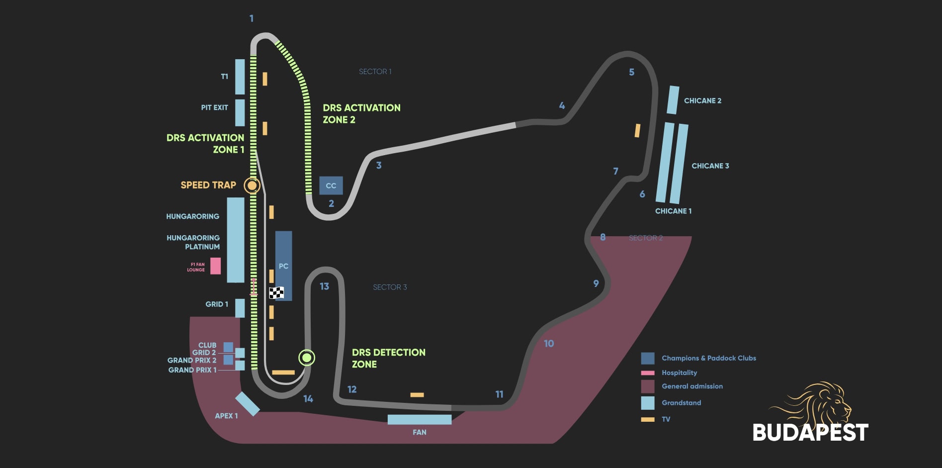 The Hungaroring Grandstand is the Main Grandstand, located on the main straight. It offers excellent views of the race start and pit lane. The Hungaroring Platinum Grandstand is higher up and covered, providing a wider view and extra comfort.