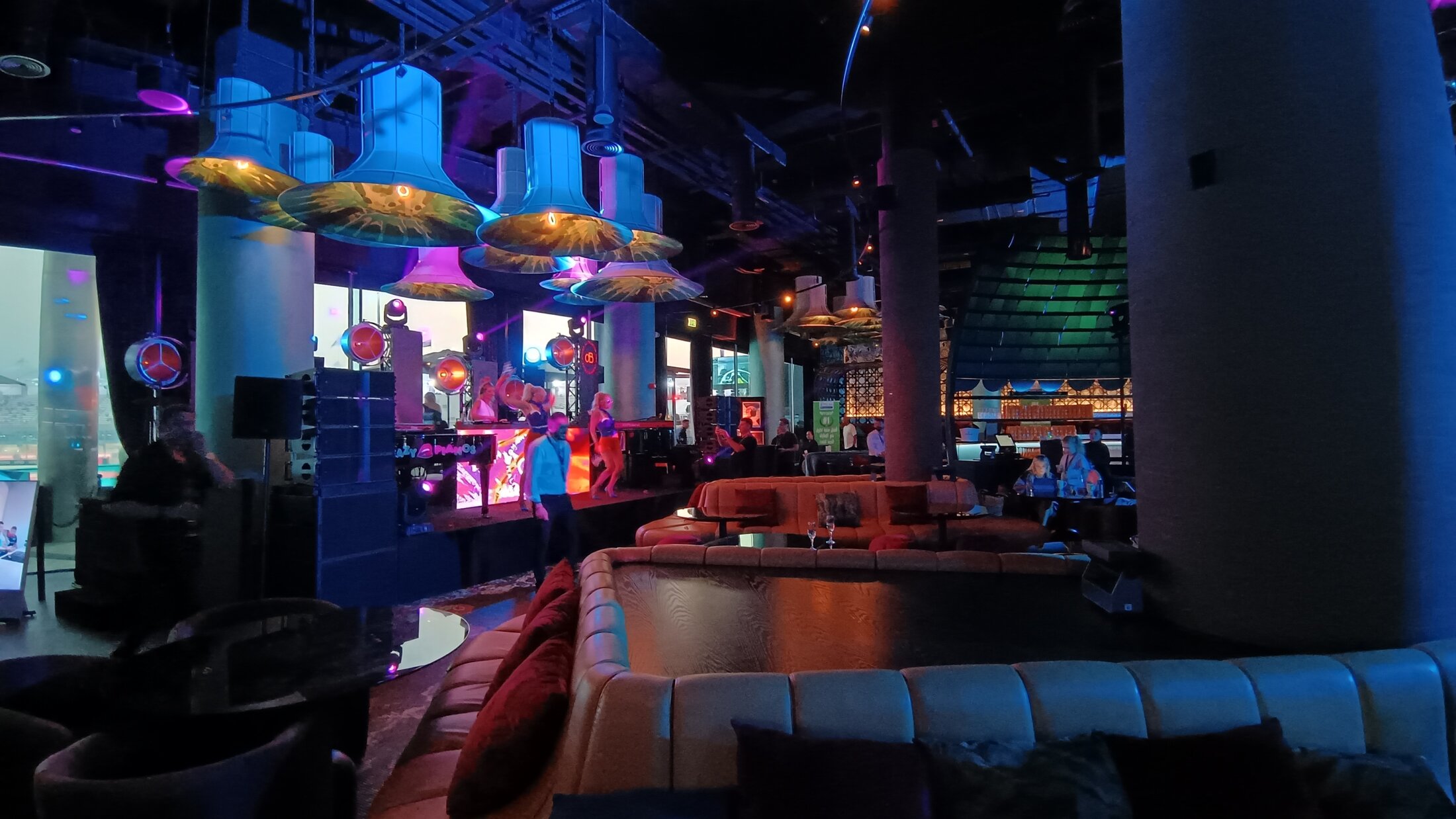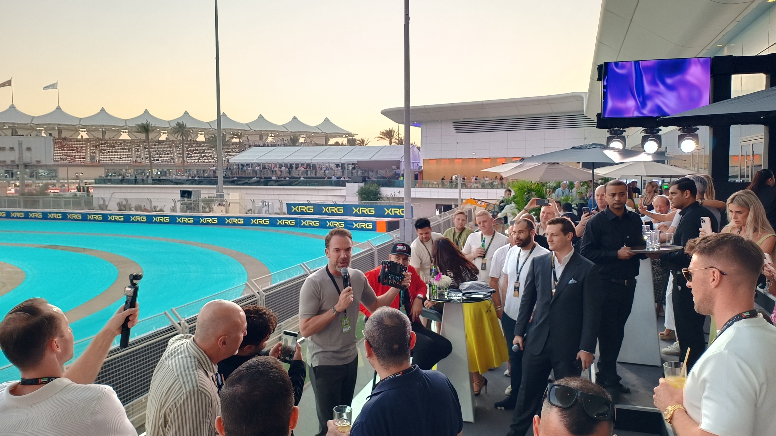 The W Lounge is part of the luxurious W Abu Dhabi – Yas Island Hotel, located right in the middle of the Yas Marina Circuit. This lounge is situated on the marina side of the hotel, overlooking turns 11, 12, and 13, where the drivers enter the final part of the track (sector 3). From the terrace, you can look out over the marina and watch the cars pass directly below you. The hotel entrance is easily accessible from the Yas Marina area and is just a short distance from the Fan Zone and the After-Race Concerts.